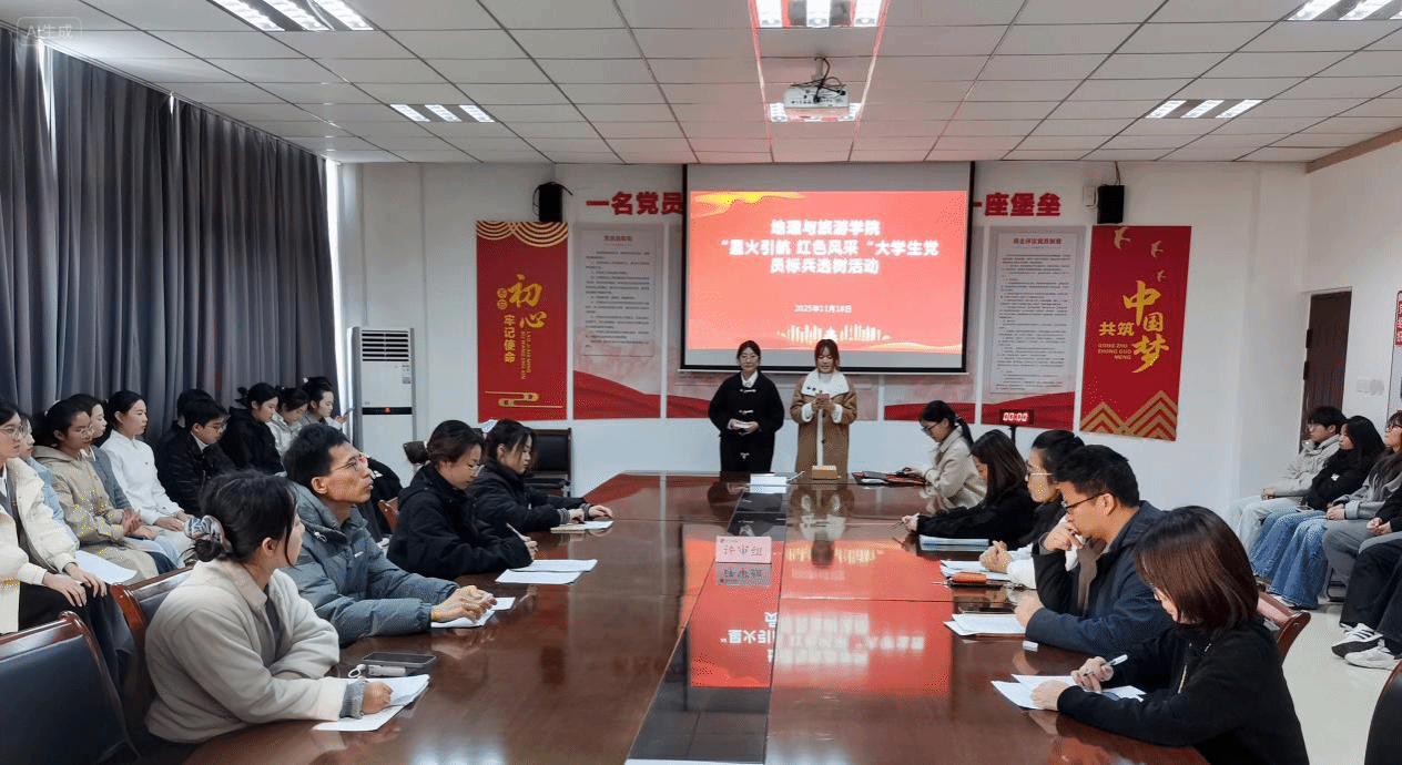 11月18日下午,地理与旅游学院党总支在学院会议室成功举办“星火引航·红色风采”大学生党员标兵选树活动。活动邀请了学校分管领导、学院党总支委员、教师及学生支部委员、教师党员代表等共同参与。