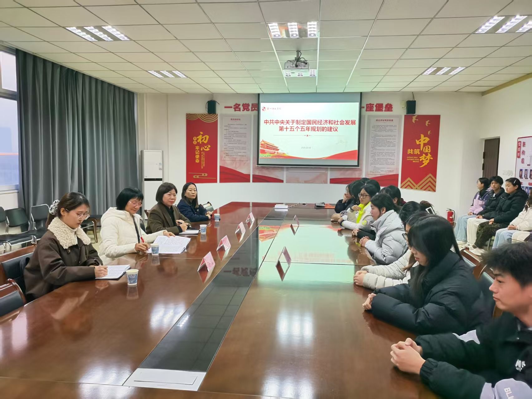 12月16日下午,地理与旅游学院第二学生党支部与第一学生党支部联合举办“师生共议`十五五´规划”主题党日活动。学校纪委书记、监察专员赵惠玲出席指导,纪委文秘科科长孙莹,学院党总支书记、副书记、专职组织员与全体学生党员、发展对象及入党积极分子参与学习。