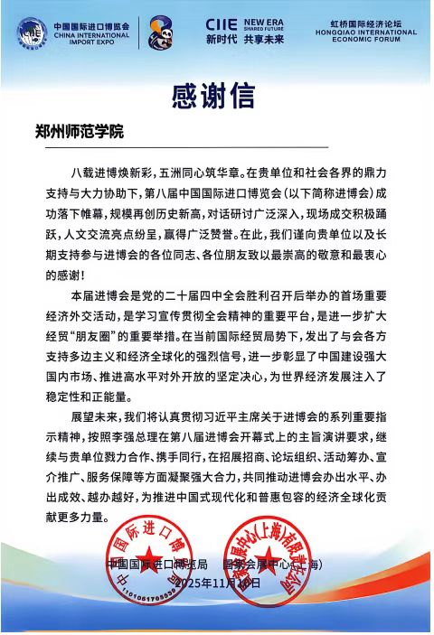 图1 进博会感谢信