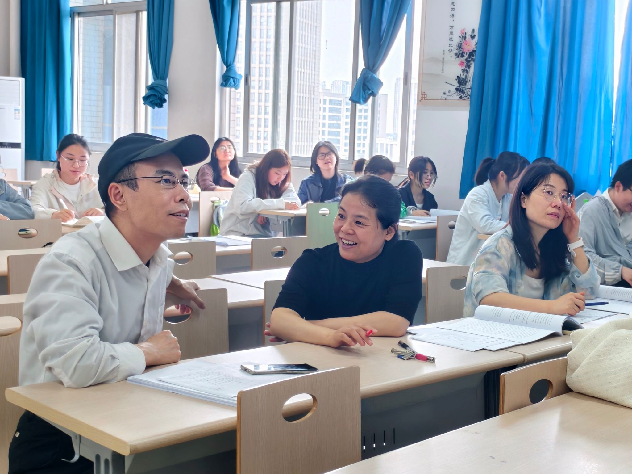 面对评审老师的专业提问与悉心指导,同学们认真聆听、虚心求教,详细记录各项修改要点,主动与老师们深入交流探讨,现场学术研讨氛围热烈浓厚。